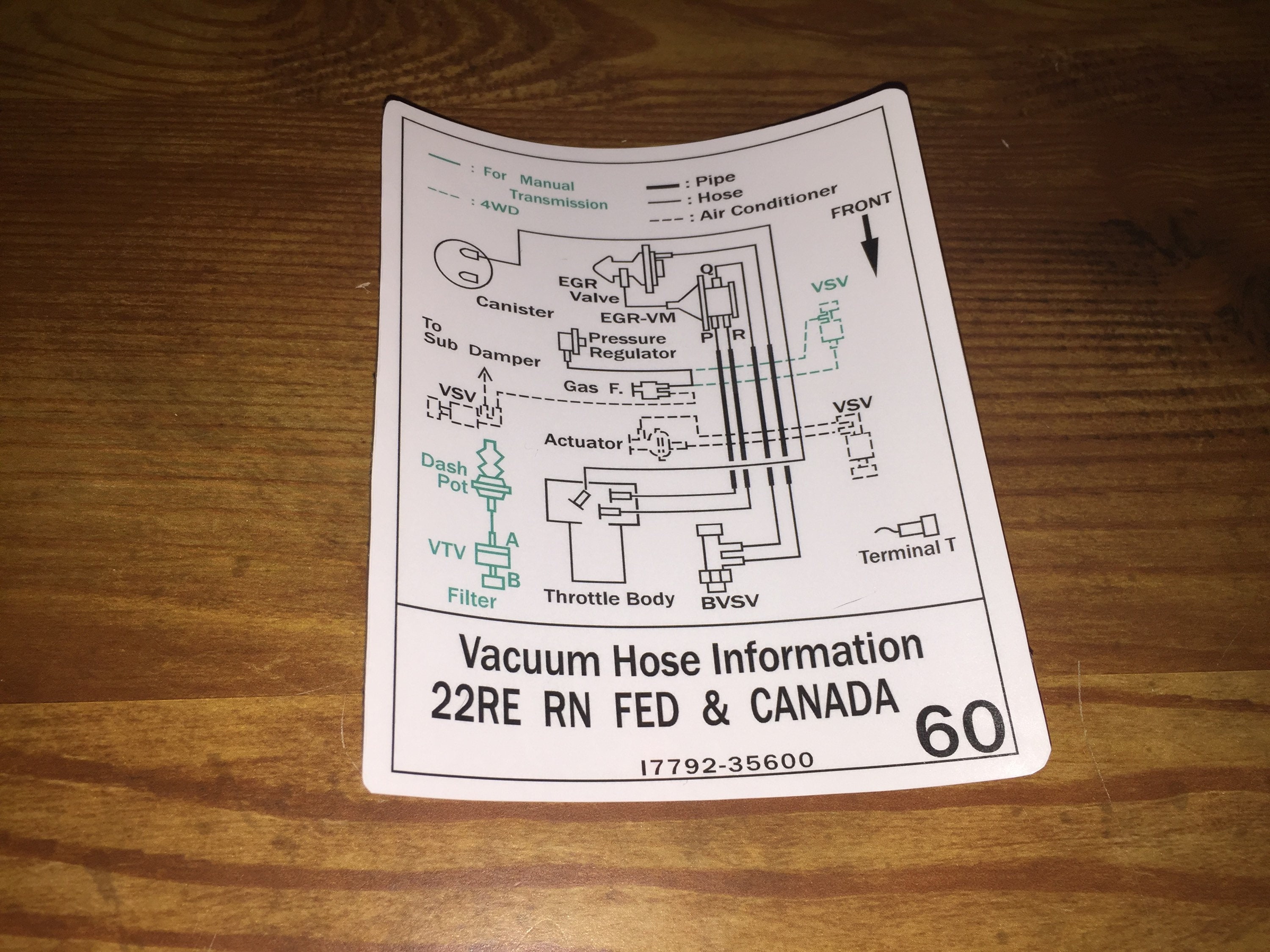 1984 1986 22re Toyota Pickup Vacuum Diagram Remade Decals Etsy