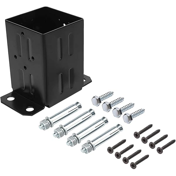 Amazon Com Jinhan 4x4 Wood Fence Post Base Brackets Heavy Duty Powder Coated 13 Gauge Steel Anchor Support Come With Screws And Concrete Anchors 4 Pack Industrial Scientific